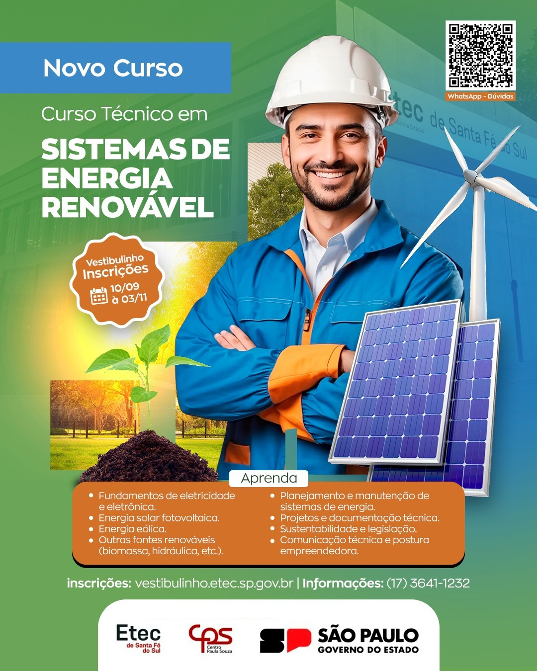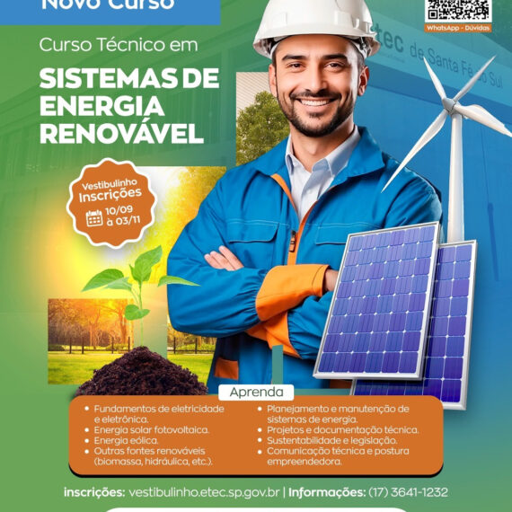 A Etec de Santa Fé do Sul acaba de lançar o Curso Técnico em Sistemas de Energia Renovável, uma oportunidade inédita na região, para quem deseja atuar em um dos setores que mais cresce no Brasil e no mundo.