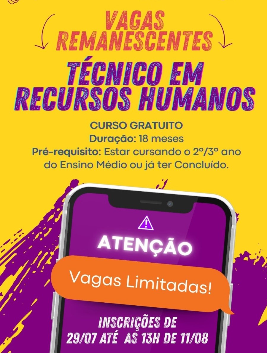 A ETEC de Santa Fé do Sul está com inscrições abertas para vagas remanescentes do curso Técnico em Recursos Humanos.